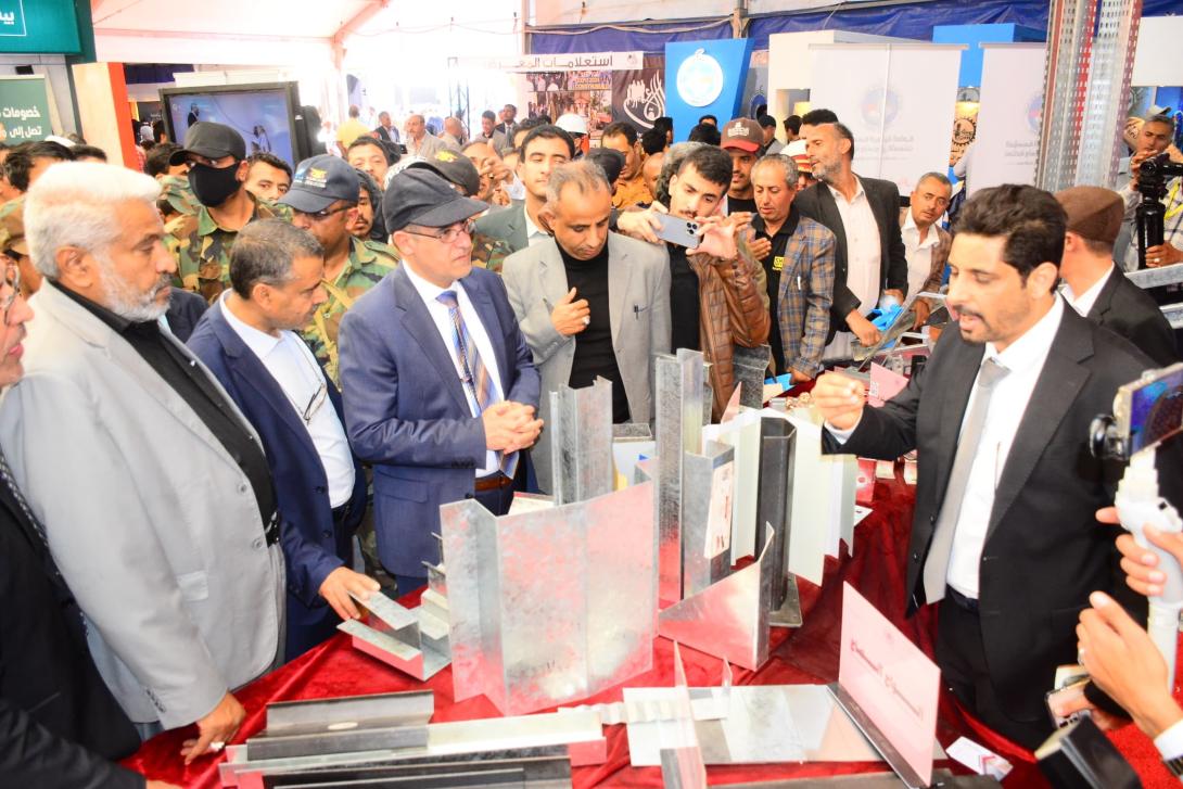 وقد افتتح المعرض وزير الاقتصاد والصناعة والاستثمار، المهندس معين المحاقري، ووزير النقل والأشغال العامة، اللواء المهندس محمد قحيم، ووزير الكهرباء والطاقة والمياه، الدكتور علي حسن.