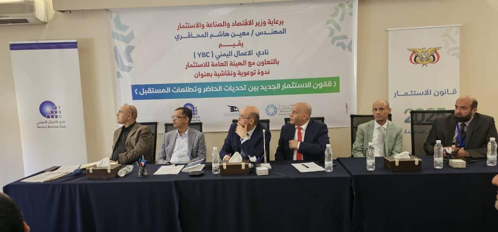 في فعالية نقاشية مثمرة، نظمها نادي الأعمال اليمني (YBC) بالتعاون مع الهيئة العامة للاستثمار، عُقدت اليوم الإثنين17/2/2025م ندوة توعوية ونقاشية بعنوان "قانون الاستثمار الجديد بين تحديات الحاضر وتطلعات المستقبل"، برعاية معالي وزير الاقتصاد والصناعة والاستثمار، المهندس معين هاشم المحاقري وحضور الأستاذ ياسر عبد الكريم المنصور رئيس الهيئة العامة للاستثمار ورئيس نادي الأعمال الدكتور محمد الانسي.