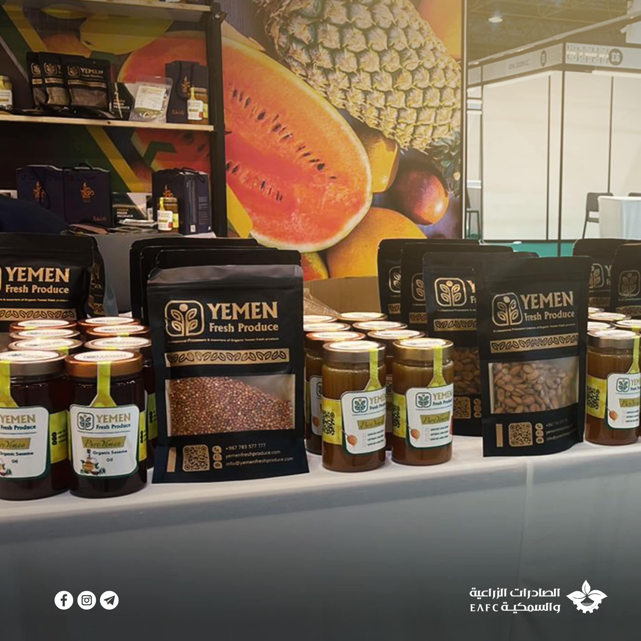 وتضمن الركن اليمني منتجات زراعية عالية الجودة أنتجتها شركات القطاع الخاص اليمني، وتضمنت الحبوب والبن والأسماك والفواكه والعسل، نفذته شركة "يمن فريش" التابعة لرجل الأعمال إسماعيل الجهمي.