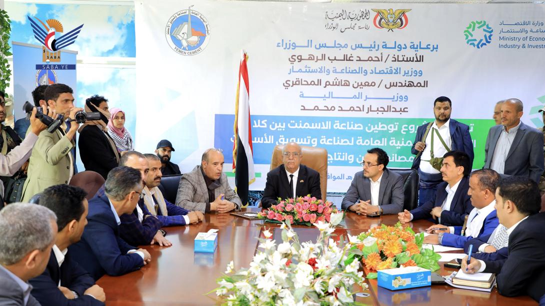بدوره أكد وزير الاقتصاد والصناعة والاستثمار المهندس المحاقري، أهمية مشروع توطين صناعة الإسمنت، وتحويل المصانع المعتمدة على المواد الخام المستوردة، للإنتاج من المواد المحلية، والبحث عن أسواق خارجية للتصدير، وما يحققه هذا المشروع من عوائد اقتصادية للبلاد ويوفر فاتورة باهظة من العملة الصعبة التي كانت تذهب لاستيراد مواد الخام الأولية.